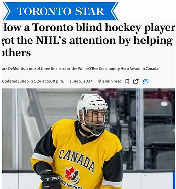 Client Mark DeMontis is a leading accessibility strategist with over 15 years of experience advancing inclusion across industries. After losing his sight at 17, he went on to found Canadian Blind Hockey, creating opportunities for blind and partially sighted Canadians to play the sport at a national level. In 2024, Mark launched his consultancy to position accessibility not as compliance, but as a business driver, and sought to raise national awareness for his new venture. The Challenge While widely respected in advocacy circles, Mark needed to transition from nonprofit founder to nationally recognized accessibility strategist. The goal was to build a strong personal brand, elevate his authority in the corporate space, and position accessibility as a strategic advantage for organizations. The Work I developed and executed a comprehensive brand and media strategy focused on: Crafting a clear brand narrative positioning accessibility as business strategy Establishing Mark as a thought leader and industry expert Launching targeted national media campaigns Leveraging his NHL Community Leadership Award nomination to amplify visibility Building sustained media momentum around his consultancy launch Amplification Over 12 months, the strategy delivered exceptional national reach: 289 article placements 1.1 billion total audience reach (according to Meltwater) Recognition in the House of Commons, receiving a standing ovation from all parties The Result Mark successfully transitioned into a nationally recognized accessibility strategist, significantly expanding his platform and positioning accessibility as a core driver of business performance across Canada.